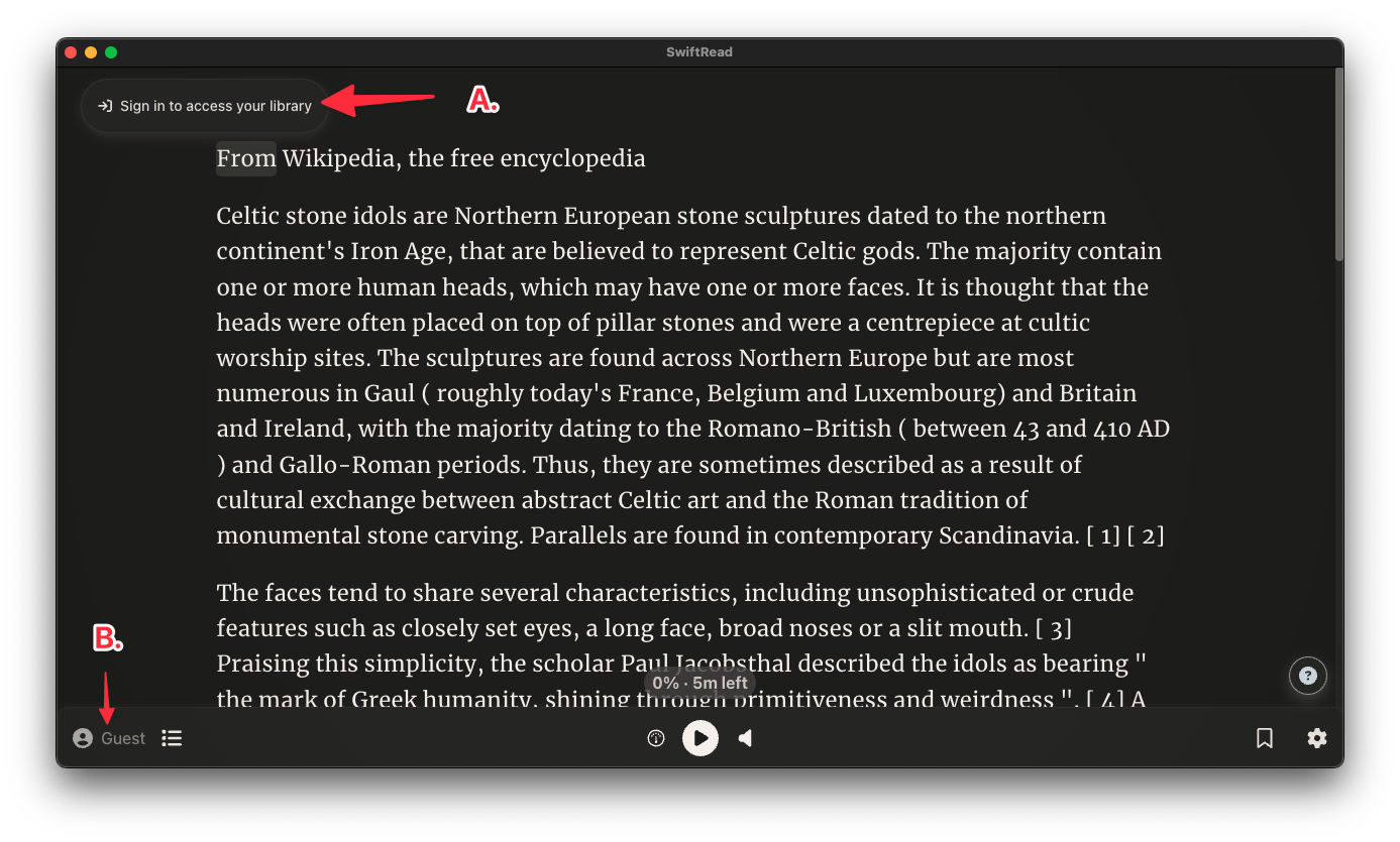 While you don't have to have an account when using the SwiftRead extension, you may still want to sign in (or create one):